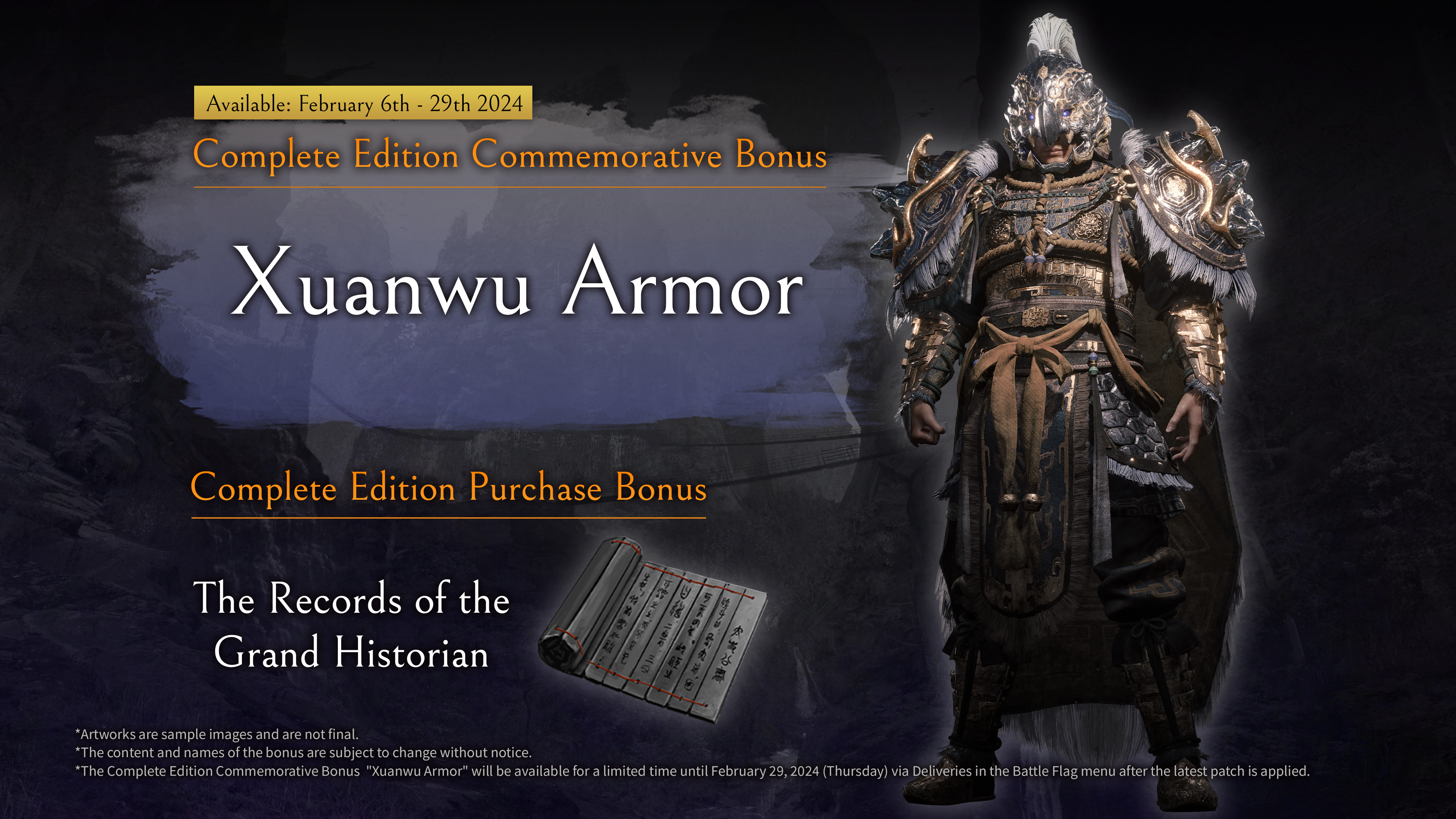 To help commemorate the upcoming launch of the Complete Edition, Team NINJA will also release a set of new equipment, “Xuanwu Armor”, to all users who own the main game in addition to those who purchase the Complete Edition!