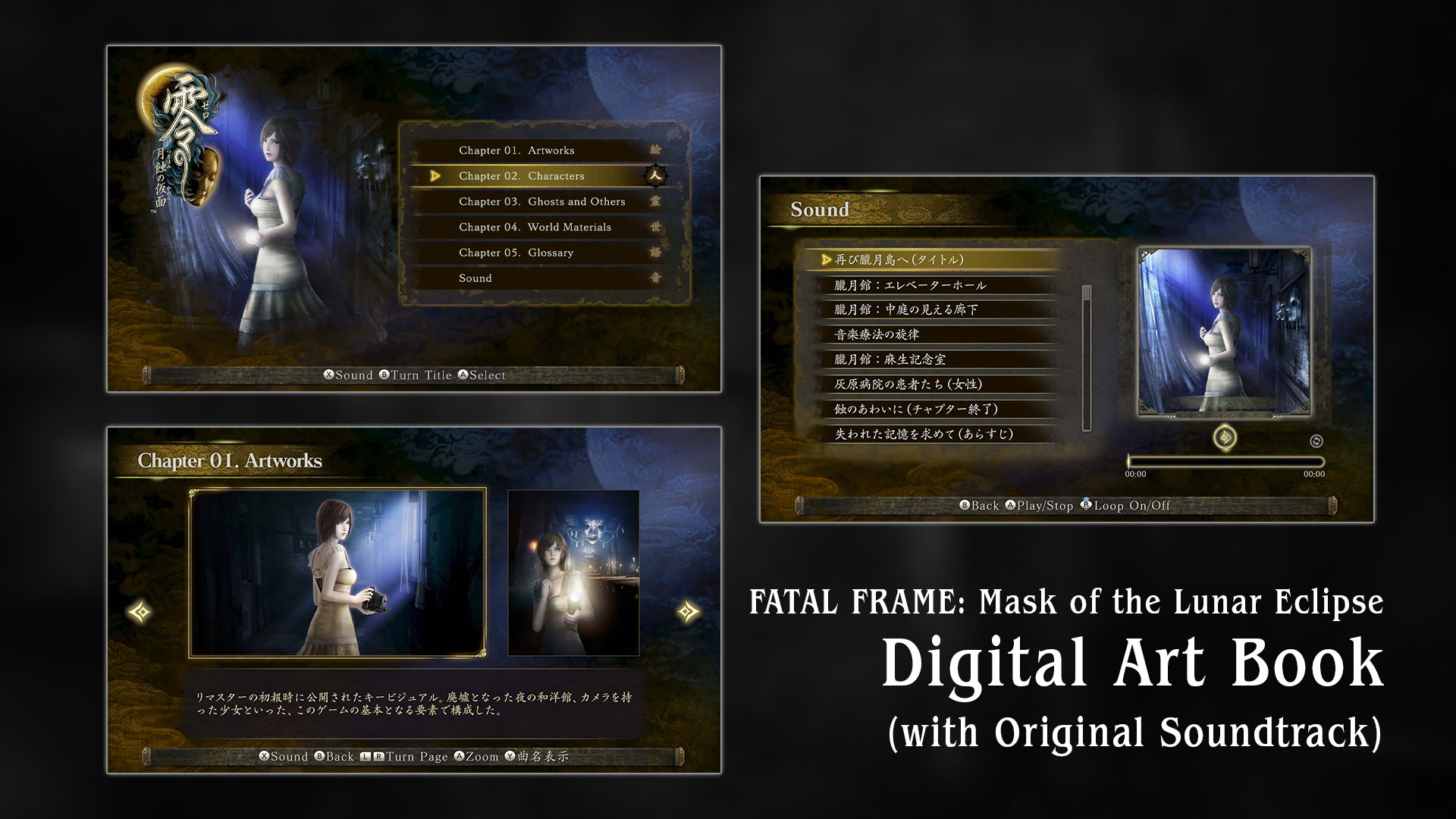 Alongside the standard version of the game, KOEI TECMO America also released a special FATAL FRAME: Mask of the Lunar Eclipse Digital Deluxe Edition. Available digitally, this unique edition of the game includes the Rogetsu Isle Dinner Party Costume Set, and a digital art book (original soundtrack included).