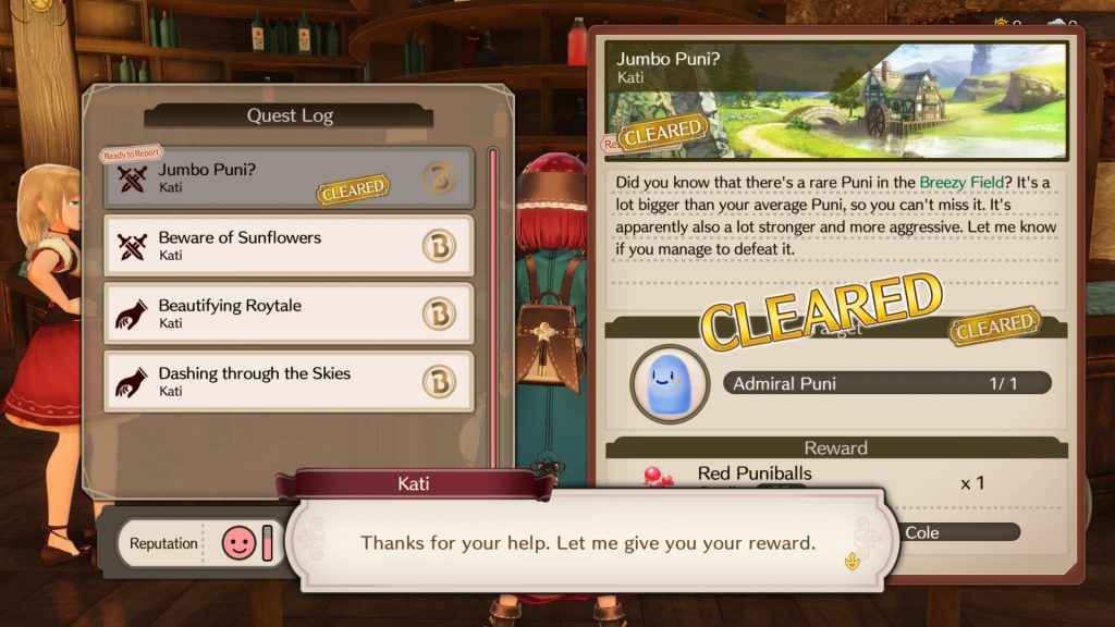 At the Crystal Sparkle Pavilion, Sophie will be able to accept a wide range of requests from the local townspeople, and through completing these requests, she will earn rewards and raise her reputation. As her reputation increases, Kati will offer advancement quests that, once successfully completed, will increase her Adventurer Grade – allowing her to take on more challenging requests with greater rewards. On the other hand, Pirka’s Emporium is a unique shop that can replenish and duplicate items – both important services for alchemists to utilize alongside synthesis.