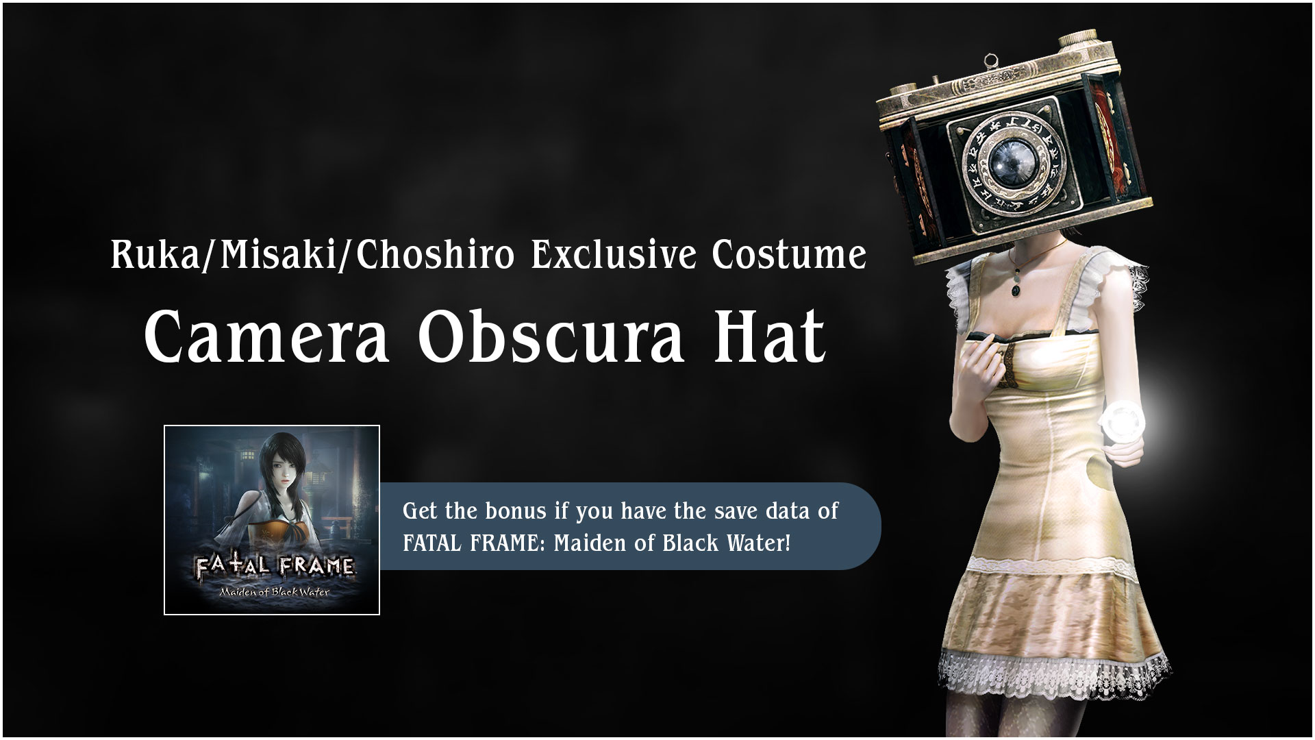 - The bonus is obtained by playing FATAL FRAME: Mask of the Lunar Eclipse on the console where the save data of FATAL FRAME: Maiden of Black Water is stored.