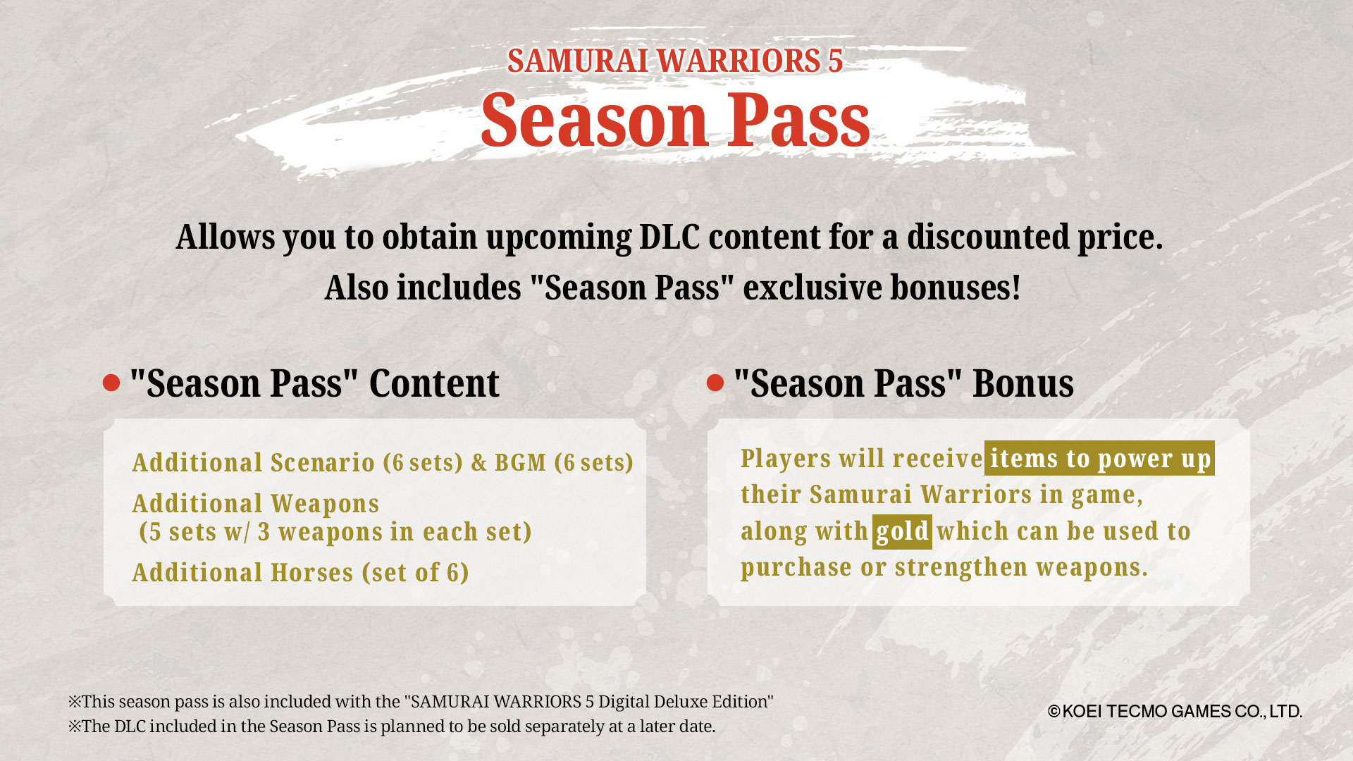 ※This season pass is also included with the "SAMURAI WARRIORS 5 Digital Deluxe Edition"