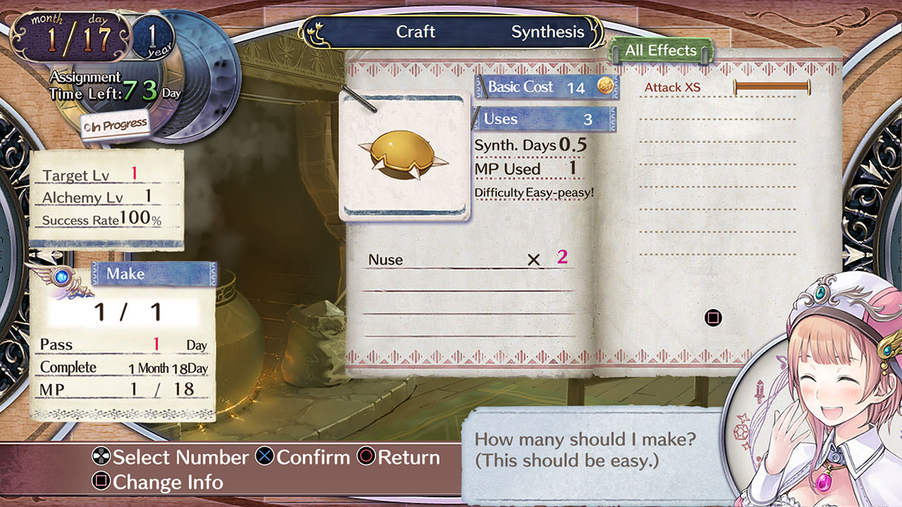 First release in the Arland series. Using Synthesis, Explore, and Battle, gain recognition for the Atelier from the country and save it from being closed. See a variety of endings by obtaining a set level of recognition in a set time period and by fulfilling certain conditions.