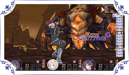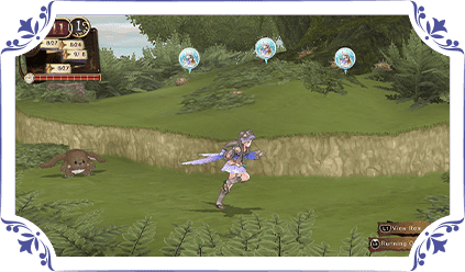 A speedy turn based battle system, where the quicker character goes first. Take charge of the battles using the powerful items created through Synthesizing.