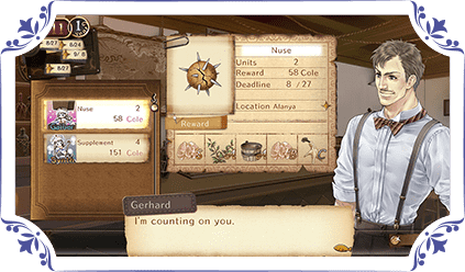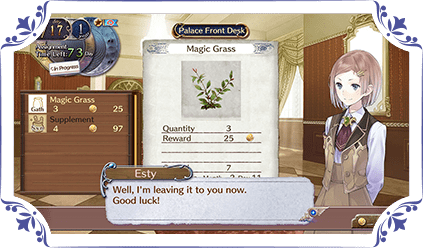 Receive money and raise your evaluation by taking on and clearing quests. Sometimes you will receive "Kingdom Quests" or even quests that greatly effect story progression.